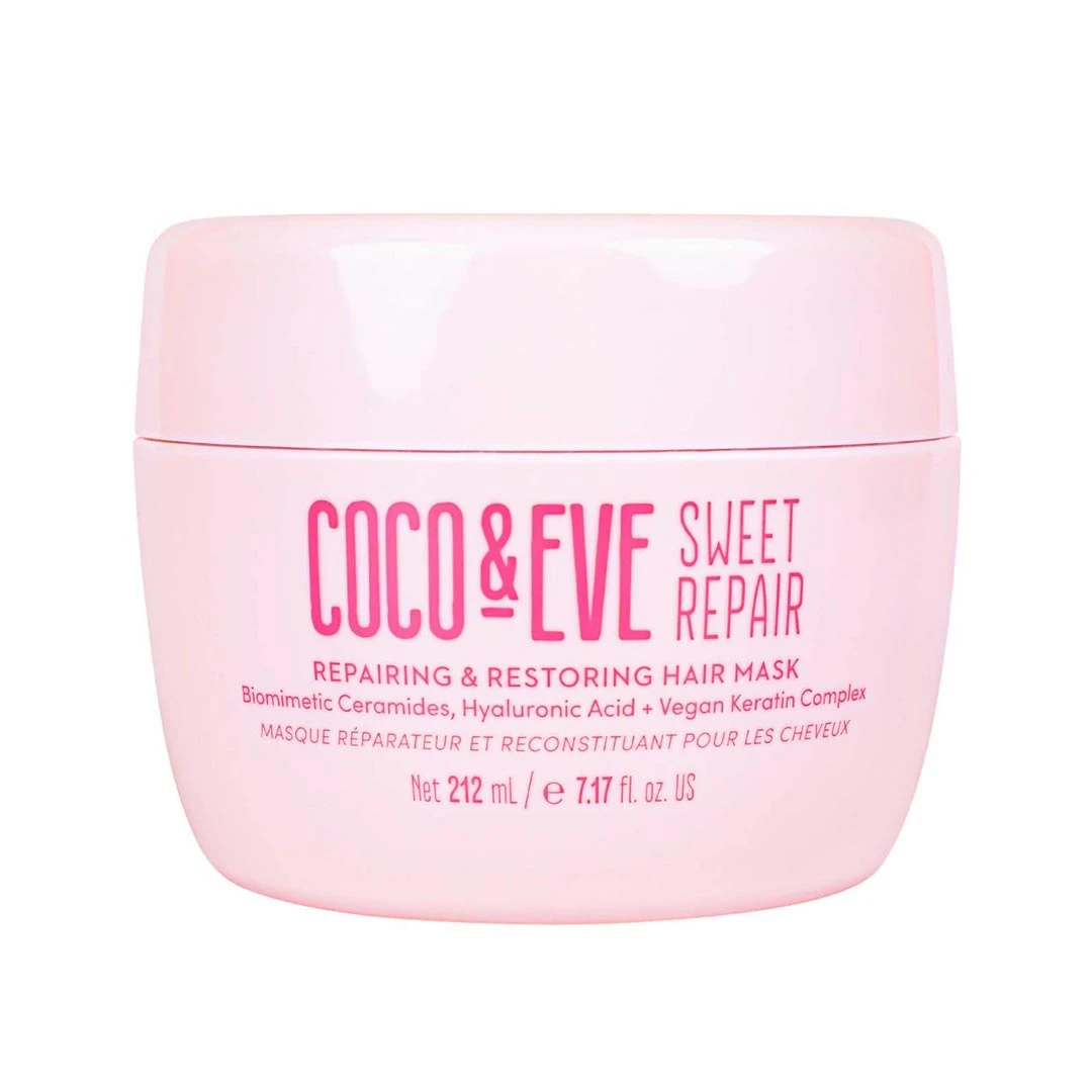 Coco & Eve Sweet Repair Masque is a specially formulated hair mask that features natural ingredients such as super fruit complex and argan oil. Use it to restore shine and elasticity to damaged, dried out hair. The mask is formulated with a blend of tropical fruit vitamins, ceramides, hyaluronic acid and a vegan keratin complex to expertly repair and strengthen your locks. Coco & Eve’s powerful formula delivers deep hydration and helps reduce breakage. Enjoy beautiful, revitalised hair every day.