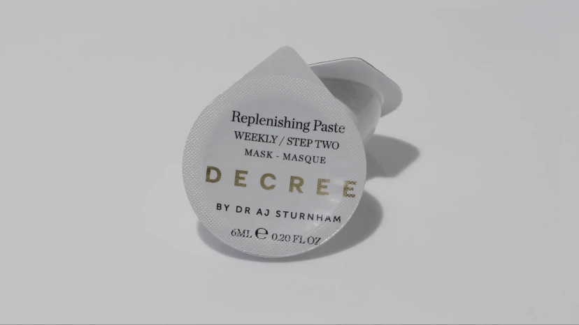 Developed for weekly use, DECREE Weekly is a two-step intense clinical strength treatment that pairs the highest level of exfoliating AHAs with a deeply hydrating restorative mask that leaves the skin looking dewy and youthful.