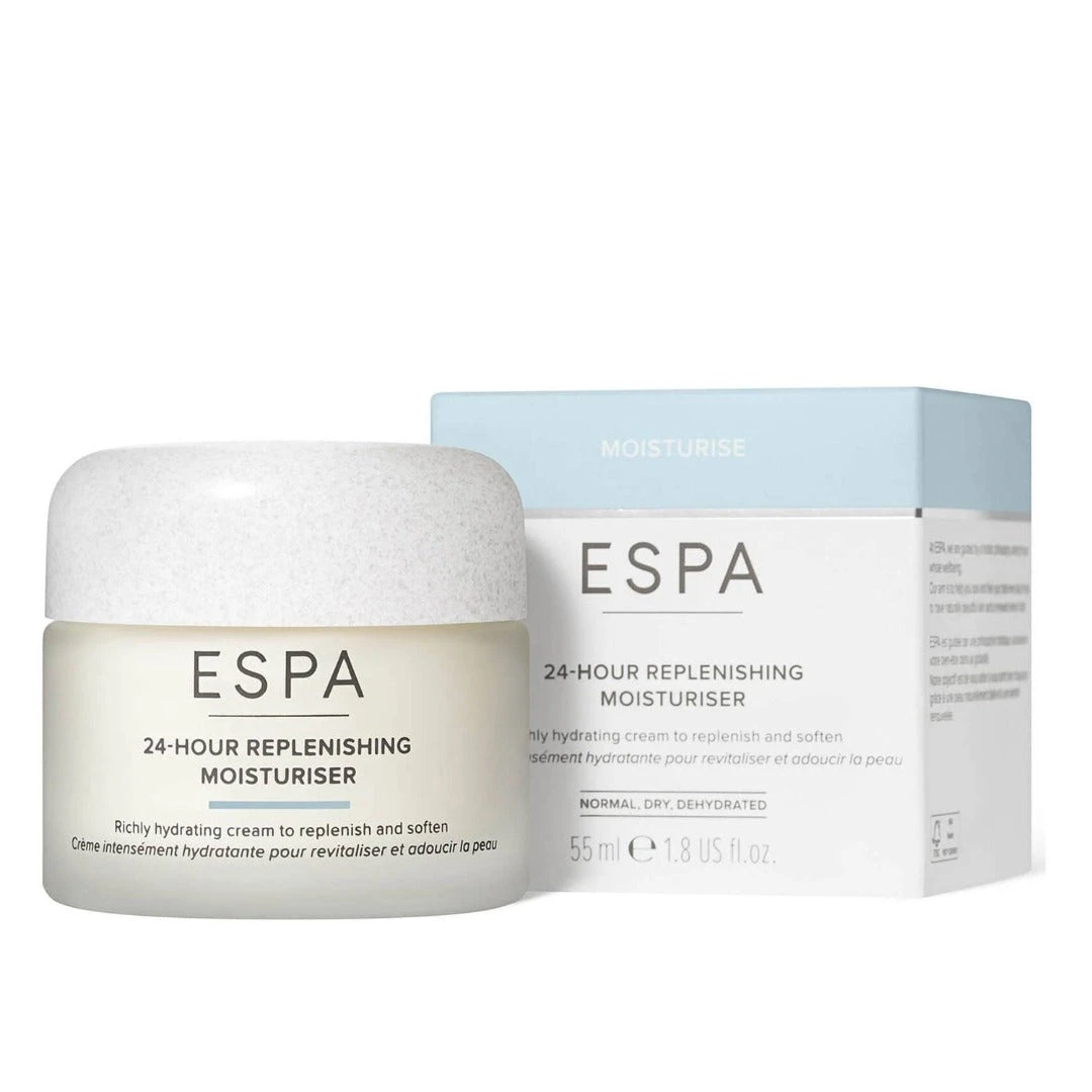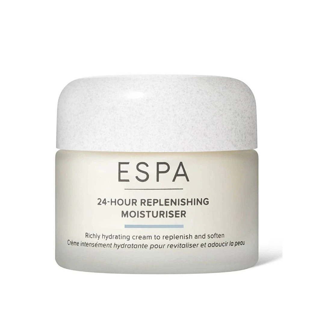 ESPA 24 Hour Replenishing Moisturiser is a richly hydrating face cream that leaves the skin feeling soft, smooth, and replenished.