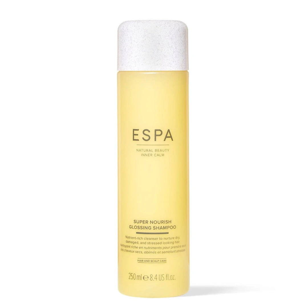 ESPA Super Nourish Glossing Shampoo nurtures dull, damaged and dry hair. Intensely replenishing, this hydrating shampoo is infused with refreshing Grapefruit Water, Chia Seed Oil and natural Pea Peptides that nourishes the hair from root-to-tip, leaving it feeling stronger, softer and more shiny.