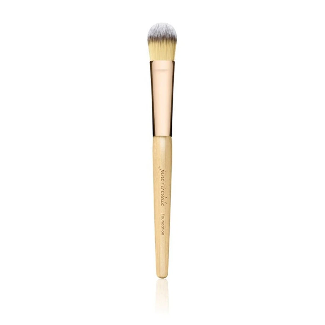 Jane Iredale’s Foundation Brush is a large, flat, synthetic hair brush that can be used to evenly distribute a large amount of liquid, cream or gel products onto the skin.