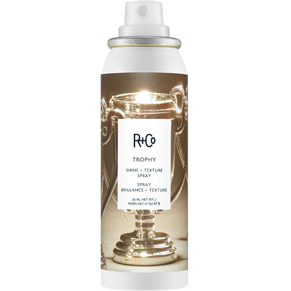 Add just the right amount of texture, volume, and shine to all hair types with R+Co Trophy Shine + Texture Spray. This illuminating hair spray helps locks appear younger and more luminous, and is infused with Sea Kale and Sweet Almond to impart the hair with intense moisture and shine without weighing it down.