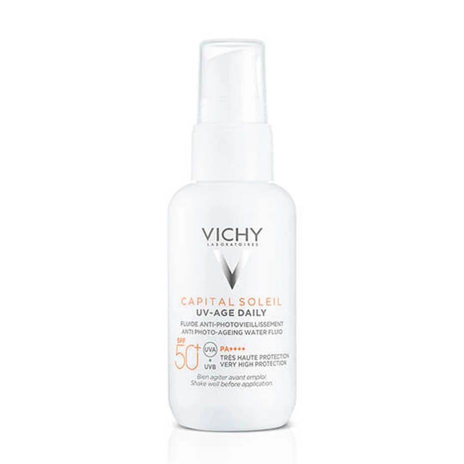 Remedying the existing signs of photo-ageing and helping to prevent more damage, Vichy Capital Soleil UV Age Daily SPF 50+ Invisible Sun Cream With Niacinamide provides very high broad-spectrum UVA and UVB protection, defends the skin from pollution, and strengthens the skin barrier. Formulated with niacinamide, vitamin E, and peptides, the advanced daily sunscreen reduces the appearance of UV-induced dark spots and wrinkles, hydrates and soothes the skin, and brightens the complexion.