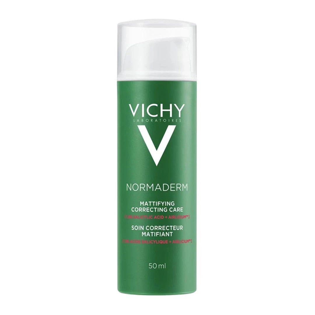 Reducing the appearance of blemishes, pigmentation, and imperfections, Vichy Normaderm Skin Corrector 1.5% Salicylic Acid Daily Moisturiser For Blemish-Prone Skin provides day-long hydration and mattifies the skin.